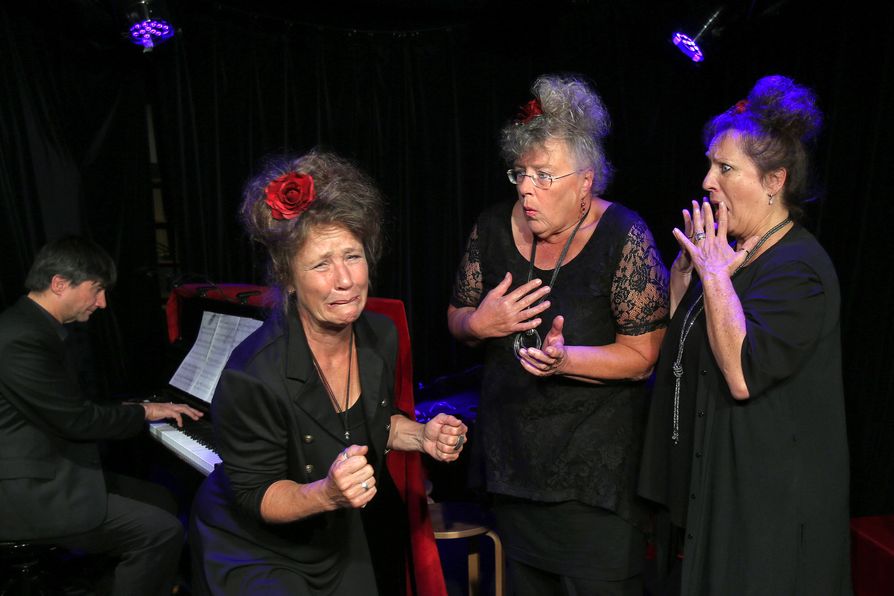 Du brauchst Lösungen für lästige Alltagsfragen wie: Ist es wirklich klug, immer die Wahrheit zu sagen? Wie kriege ich meinen Mann zur Therapie? Wie versaue ich meinem Ex seinen schönsten Tag? oder Wo steckt der Muskelmann, der die Tübinger Frauenwelt so aus dem Häuschen gebracht hat? - dann hör dir an, was die drei Tübinger Urgesteine Birgit Vona (Mezzosopran), Irene Jantzen (Sopran), Renate Hallmayer (Alt) und ihr Mann am Klavier (Bert Klein) anzubieten haben. Mit scharfem Witz, musikalischer Raffinesse und viel Charme schöpfen sie aus einem reichen Fundus eigener Lebenserfahrung und meistern so kleine und große Probleme auf oft überraschende Weise.